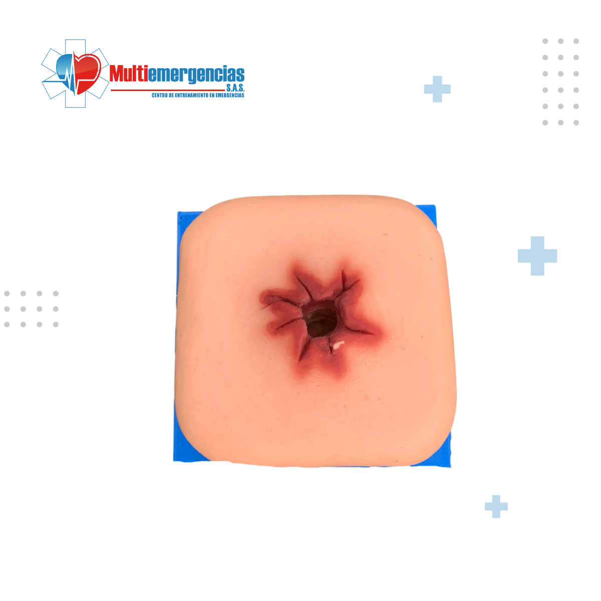 lesiones complejas profundas. Es una solución de bajo coste para el entrenamiento de aquellos que trabajen en entornos donde se pueden producir heridas traumáticas y heridas por arma de fuego.